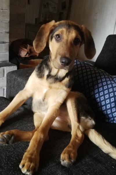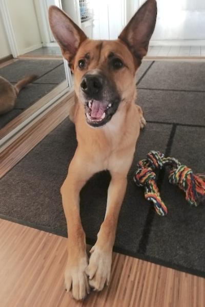 Huuko on opetellut kotikoiran elämää tovin hoitopaikassa Keravalla. Ja sehän sujuu reippaalta pojalta erinomaisesti!