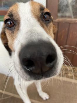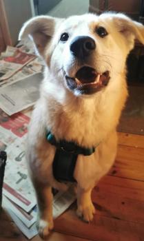 Josi pääsi Suomeen! Pörröparta Josi odottaa kotiehdokkaita hoitopaikassaan Helsingissä.