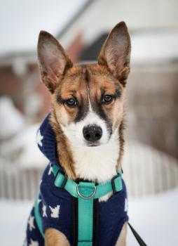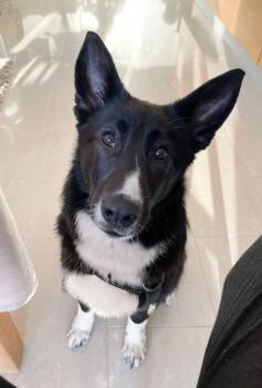 Koko: kasvaa siroksi keskikokoiseksi (nyt n. 42 cm, 9 kg)