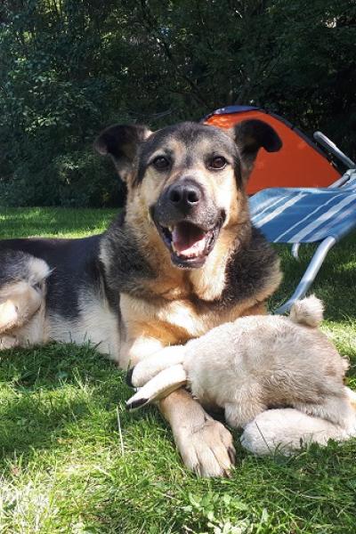 Vika tuli aluksi sijaiskotiin etsimään omaa kotia mutta sillä oli sen verran vanhuuden vaivoja, että siitä tuli kummikoira ja se jäi hoitopaikkaansa asumaan.