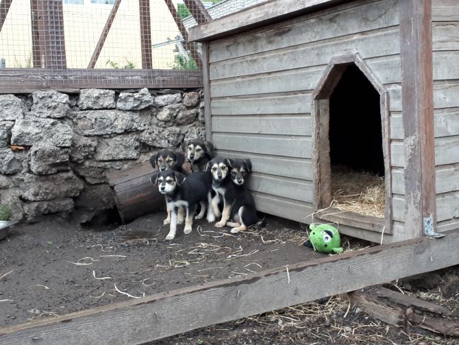 Viisi pelokasta ja nälkäistä pentua saapui Olgan tarhalle pahvilaatikossa hiukan yli viikko sitten. Niiden emon omistaja hylkäsi talvella sekä tulipalossa kärsineen talonsa että koiransa, ja joitakin kuukausia myöhemmin tämä viisikko syntyi talon pihapiiriin. Näistä n. kuusiviikkoisista pienokaisista koostuu Viipurin Koirien uusi kummipentue, jota voi tukea lahjoituksin. Tulemme kertomaan säännöllisin kuulumisin näiden poikasten selviytymisestä, kasvamisesta sekä – jos niin onnellisesti käy – kotien löytymisestä Facebook-sivullamme.