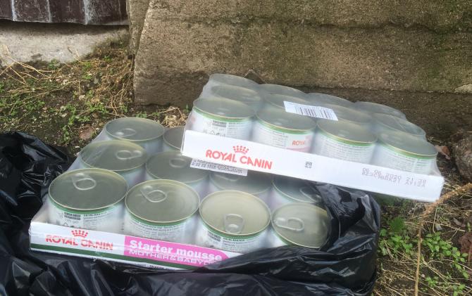 Kummipentueelle vietyjä starter-ruokia. Nämä märkäruoat eivät riitä kuin pariksi päiväksi.