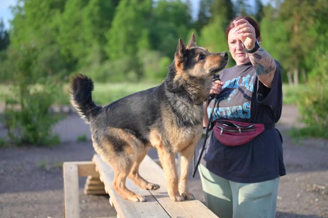 Kuzmich on saksanpaimenkoiraa pienempi, mutta ulkonäön perusteella siinä voinee sitä veikata olevan ripauksen jos toisenkin. Kuzmich on siis varmasti aktiivinen poika, joka kaipaa samanlaista omistajaa: lenkkeilystä, koulutuksesta ja yhteisestä puuhailusta nauttivaa.