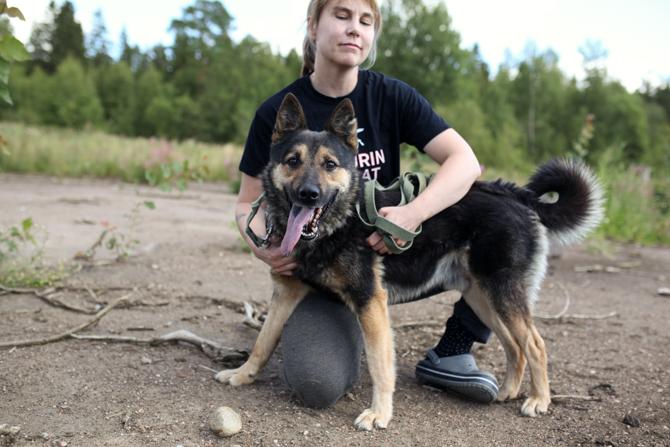 On kuuma hellepäivä, kun olemme Viipurissa. Kuzmichilla on kova kiire päästä haistelemaan ympäristöä eikä se oikein malta asettua paikoilleen. Ehkä tukala kuumuuskin vaikuttaa asiaan. Vieraisiin ihmisiin se näyttää suhtautuvan mutkattomasti, samoin toisiin koiriin.