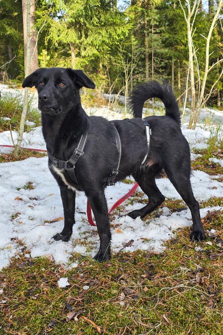 Loki kävelee tottuneesti hihnassa ja ilahtuu tutuista ihmisistä kovin. Se rakastaa rapsutuksia, herkkuja ja uusia lenkkipolkuja. Se on näppärän kokoinen koira ja Elena toivoo kovasti, että kohtuullisen pienikokoisena Lokilla olisi mahdollisuus löytää oma koti. Se on kuitenkin musta uros, jotka helposti jäävät muiden varjoon. Sillä kesti kaksi vuotta päästä mukaan adoptio-ohjelmaamme, mutta toivomme, että vielä sitä onnistaisi.
