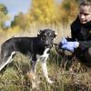 Vaikka Lyyti heiluttaa häntäänsä ihan yhtä innoissaan kuin muutkin pennut, jää se alkuun taustalle vähän tuumivaisen näköisenä ennen kuin tohtii tulla tutustumaan. Pieni kuono nuuskuttaa vieressä koko ajan, mutta kun Lyytiä yrittää koskettaa, ottaa se pari askelta taaemmas. Ystävällinen ja utelias Lyyti ei kuitenkaan pakene vaan tulee samantien uudestaan luokse. Lyytin kanssa ei aitauksessa oikein saa rauhallista seurusteluhetkeä ja tyttö päätetään ottaa ulos hihnakävelylle.