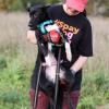 Syyskuussa Matilda on jo paljon reippaampi. Se on kiinnostunut vieraista, jopa ilahtunut. Tytön saa helposti valjaisiin ja Matilda kulkee omin jaloin uteliaana tutkimassa tienvarren kasvillisuutta. Sylissä se istuu nätisti, mutta kuvissa näkyy huolestunut silmäpari, sillä kamera ja siitä kuuluva ääni saavat Matildan epävarmaksi.