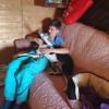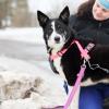 Tuo hiljainen, ystävällinen ja vaatimattoman oloinen koira jäi kuitenkin mieleemme ja Elenan avustuksella Miinalle sitten erään vierailumme aikana saatiin valjaat päälle yhteisvoimin. Miina ei millään olisi halunnut lähteä tutulta tarhalta. Vaikka siellä olikin alkuun sen mielestä pelottavaa, pitää Miina sitä nyt turvapaikkanaan. Se yritti peruuttaa ulos valjaistaan ja pyrki kaikin voimin ovenraosta takaisin sisään.