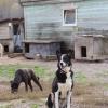Nykyään Miina viettää aikaa myös ulkona muiden koirien kanssa. Yöt se on mökissä, päivät vapaana tarhan suurella keskipihalla sekalaisen koirajoukon kanssa.