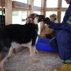 Milo innostuu aina kovasti tarhavieraista. Rapsutuksia se ujostelee mutta hyppää kuitenkin reippaasti tulijoita vasten.