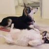 Kotihoitopaikassa Minttu on osoittanut tulevansa hienosti toimeen niin toisten koirien kuin kissojenkin kanssa. Sisäsiisteyskin on Mintulla jo hallussa.