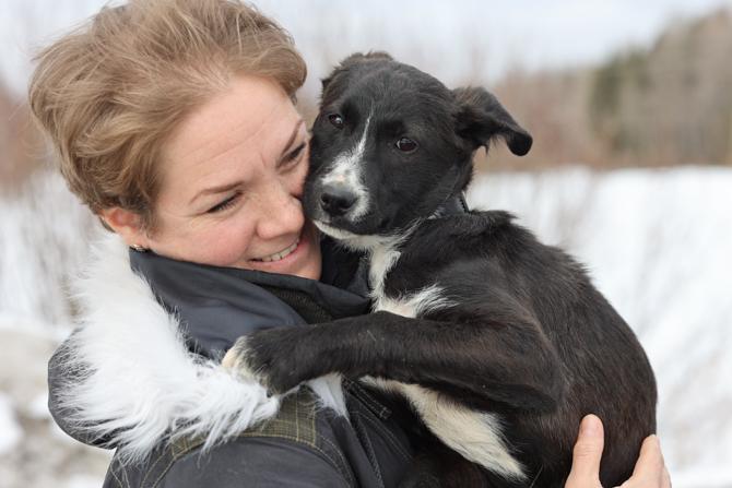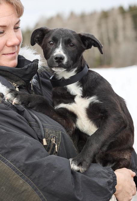 Tapasimme Moran uudestaan heinäkuun lopulla. Se on muuttanut tarhalle ja jakaa saman aitauksen kahden isomman nartun kanssa. Mora hyppelee niiden tavoin innoissaan aitauksen seinää vasten ja haluaa ottaa selvää vieraista, mutta eleistä näkee että uudet ihmiset silti vähän jännittävät. Moraa saa pyydystää jonkin aikaa ennen kuin tyttö saadaan kiinni varusteiden pukemista varten, mutta kun valjaat on yllä lähtee Mora iloisesti ulkoilemaan.