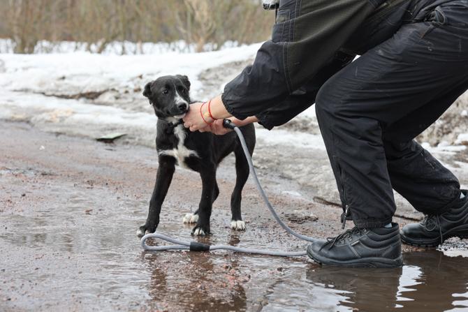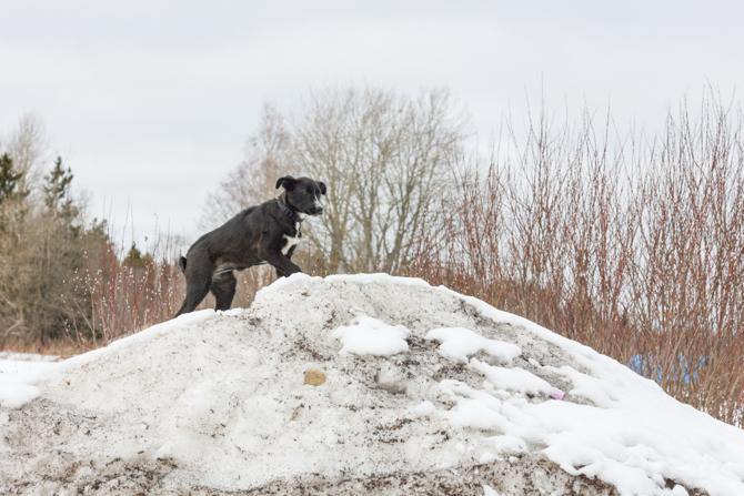 Mora suhtautuu meihin koko ajan rennommin, syö nameja kädestä ja katselee uteliaana mistä niitä saisi lisää. Vapaana vieressä jolkotteleva tyttökoira saa Moran töpön väpättämään ja Moran tekisi mieli lähteä juoksemaan ja leikkimään sen kanssa. Mora vaikuttaa tulevan hyvin toimeen kaikkien hihnassa tapaamiensa koirien kanssa, ja siitä saa muutenkin sopuisan ja kiltin vaikutelman.