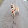 Lokakuun lopulla koitti Musjan elämässä erityinen päivä, kun se pääsi ensimmäistä kertaa hihnalenkille tarhan ulkopuolelle. Ymmärrettävästi Musja oli varsin hämmentynyt ja peloissaankin kaikesta uudesta, mitä ulkomaailmassa vastaan tuli: autoista, pyöräilijöistä ja muista kummallisista viuhtojista. Myöhemmin, kun käännyttiin autotieltä rauhallisemmalle pikkutielle, Musja rauhoittui ja alkoi kiinnostua ympäristön hajuista, äänistä ja tapahtumista. Tyttö maisteli ruohonkortta ja häntäkin nousi selän päälle tutuksi rinkulaksi rentoutumisen merkkinä. Vaikka jännittävät uudet hajut kovasti kutkuttivat tytön kuonoa, muisti Musja välillä ottaa kontaktia myös taluttajaansa. Onhan ihmisseura sosiaaliselle tarhakoiralle harvinaista herkkua, josta täytyy ottaa ilo irti.