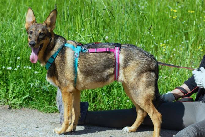 Naala on herkkä tyttö, jolle meluisa tarhaympäristö on pelottava. Toivommekin sen pääsevän mahdollisimman pian omaan, koirakaverilliseen kotiin reipastumaan.