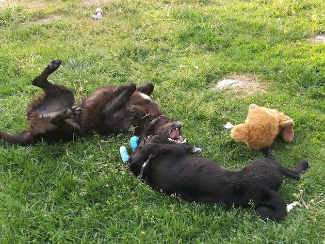 Nusjan hoitopaikka on maaseudulla useamman koiran kaverina.