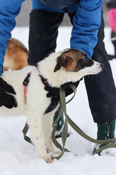 Nyt noin puolivuotias Ordi on tarhakoiraksi monella tavalla onnekas, jos tarhakoiria nyt voi koskaan onnekkaiksi kutsua. Se on päässyt ulkoilemaan vapaaehtoisten kanssa hihnassa monta kertaa ja näin se on päässyt kasvamaan reippaaksi natiaiseksi, joka viihtyy hienosti ihmisten seurassa. Odrin persoonallisen väristä valkoista turkkia tummine merkkeineen ei myöskään voi olla huomaamatta. Katsokaa nyt vaikka itse tuota suloista naamaa ja tuota puoliksi ruskeaa häntää, joka niin vimmatusti vispaa aina, kun ihmisiä on näköpiirissä. Kyllä kai joku näin suloisen tytön huomaa?