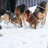 Parempilaatuinen kuivamuona toivottavasti auttaa niitä saamaan hiukan lihaa luiden päälle ja kasvattamaan parempikuntoisen turkin suojaksi pakkaselta. Ja onhan se hyvää! Ruoka maistuu niin paljon paremmalta kuin se tavallinen, kaikkein halvin laatu, jota tarhalle normaalisti tilaamme.