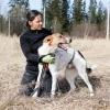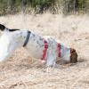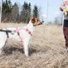 Tapasimme Ostapin huhtikuussa. Sydän sulaa vahaksi, kun vain kirjoittaa siitä, kuinka ihana koira se on. Kaiken kokemansa jälkeen se osoittautuu iloiseksi, eloisaksi ja valppaaksi - aivan kuin mitään onnettomuutta ei olisi koskaan ollutkaan. Se kävelee hihnassa hötkyilemättä ja silminnähden nauttii seurastamme sekä rapsutuksista. Jonkin asteista metsästystaitoakin oli havaittavissa, kun Ostap intoutui kaivamaan kuoppaa pellolla. Heinän seassa lymyilee varmasti jos minkämoista pikkueläintä!