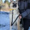Ihmisrakas ja kaunis Peku pääsi hihnakävelylle tarhan ympäristöön.