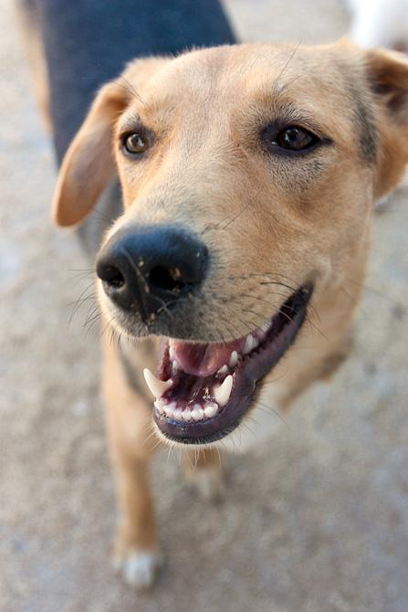 Petunia jää toisten koirien jalkoihin, mutta itse se suhtautuu kavereihin sopuisasti. Petunia suhtautuu ihmisiin ujon ystävällisesti. Se tulee tervehtimään ja ottaa namin kädestä, haistelee sormia ja antaa silittää poskista. Sen enempää se ei kuitenkaan nyt uskaltaudu kosketeltavaksi ja kun kamera kaivetaan esiin, Petunian ujous ottaa tytöstä vallan.