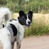 Tässä olisi mukava, kiltti ja ihmisrakas poika valmiina omaan kotiin. Prinssin turkki on saanut hauskan koristelun laikuista ja pilkuista.