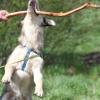 Rei lähti kanssamme iloisena lenkille ja oli kamalan kiinnostunut kaikista kepeistä. Kuuma hellepäivä ei Reitä väsyttänyt vaan siitä oli ihan mahtavaa päästä touhuamaan ihmisten kanssa. Keppileikit olivat eniten pojan mieleen. Reistä saisi ihan varmasti mahtavan kaverin itselleen. Kunpa joku huomaisi pojan, ettei kotikoiran elämään tottunut Rei joutuisi jäämään syksyn sateisiin ja talven pakkasiin.