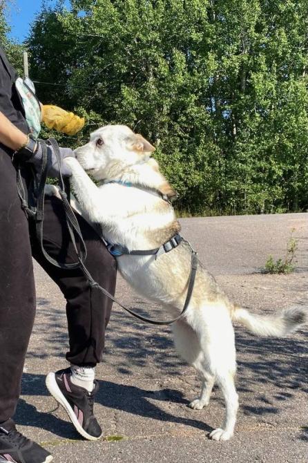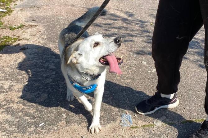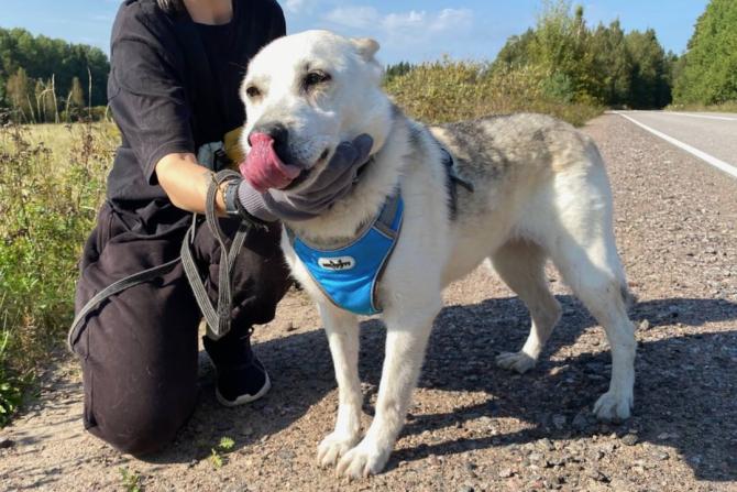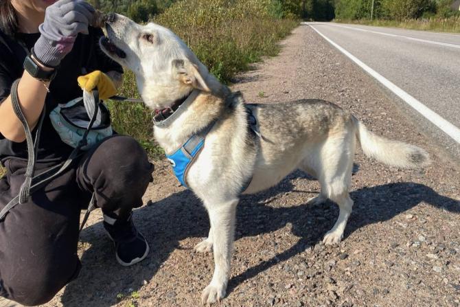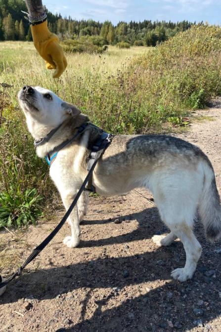 Renjalla on tutuiksi tulleita paikallisia vapaaehtoisia, joiden kanssa se on päässyt tutkailemaan lähistön metsäpolkuja. Huskynsukuinen Renja tykkää kovasti käydä kävelyillä ja siitä saa kivan kaverin lenkeille mukaan. Vauhtia riittää vielä, vaikka Renja ei ihan tyttönen enää olekaan.