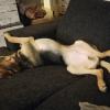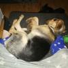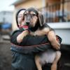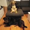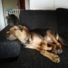Saapuessamme sisällä Olgan olohuoneeseen, Rodik pitää meihin pientä välimatkaa. Se katselee hyvin uteliaana uusia ihmisiä, mutta ei tule luokse hakemaan rapsutuksia. Paikalla yhdistysaktiivien lisäksi on vielä pari paikallista eläinlääkäriä, joten säpinää riittää. Rodik ei kuitenkaan pötki pois näkösältä vaan se haluaa vain rauhassa ensin tutkailla ja haistella tilannetta. Pian poika käykin pehmeiden vällyjen päälle rauhassa löhöämään, ja kun sitä lähestyy alkaa pieni häntä vispaamaan. Alkuun totisesta Rodikista kuoriutuukin parissakymmenessä minuutissa suloinen suukottaja, joka näyttää olevan huomiosta ja rapsutuksista oikein mielissään.
