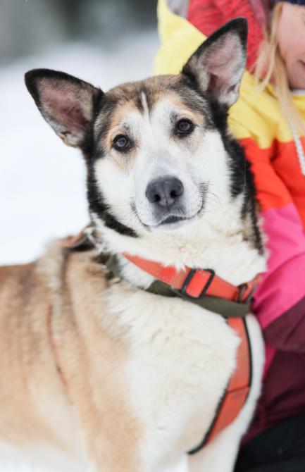 Sahra jakaa nykyisin aitauksen lempeän ja isokokoisen uroksen kanssa. Kaksikko vaikuttaa tulevan hyvin toimeen keskenään ja ne pääsevät tammikuun alussa kanssamme kävelylle. Sahra hurmaa välittömästi kaikki avoimella, ystävällisellä ja välittömällä luonteellaan. Sen mielestä ihmiset ovat ihania eikä se meinaa uskoa todeksi, että tässä nyt kolme ihmistä ihan tosissaan häärii sen ympärillä, yrittää varustaa sitä valjaisiin ja viedä jaloittelemaan pitkästä, pitkästä aikaa. Häntä heiluu, pehmoinen neiti painautuu vasten ja antaisi pusuja loputtomasti - myös mukana olevalle miehelle - joka on jokseenkin harvinaista. Voi, mitä tämä tyttö täällä tekee. Se kuuluu kotiin.