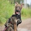 Sampo on iloinen, ihmisiin uteliaasti ja ystävällisesti suhtautuva pentu. Pentueensa sirokokoisin Sampo toivoo pikaista pääsyä Suomeen.
