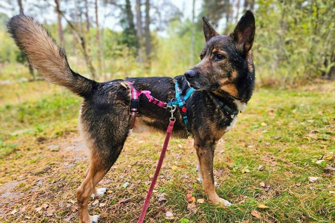 Tarhareissuillamme mieleemme jäi vahvasti ystävällinen ja sydämellinen isohko poika Serge. Puimme sille useampaan otteeseen varusteet ja lähdimme sen kanssa ulkoilemaan. Hihnassa poika kulki mallikkaasti ja se oli sille selvästi tuttua hommaa. Serge kulki reippaasti eikä se välittänyt ohi ajavista autoista tai vapaana vierellä kulkevista muista koirista.