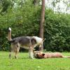 Tarhan ulkopuolella on muutama vieras koira odottamassa lenkille pääsyä, ja voi miten onnessaan Severi onkaan nähdessään koiraseuraa! Se olisi heti kipittämässä niiden luokse häntä heiluen ja suunpieliä lipoen. Leikkiäkin tekisi mieli, mutta Severin harmiksi toiset koirat ovat enemmän kiinnostuneita ihmisistä kuin siitä.