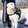 Tapasimme Snezhannan jälleen. Se ulkoilee jo tottuneesti tutuissa valjaissaan ja tulee uteliaana nuuhkimaan meitä.