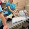 Yhdistyksen aktiivit kuskasivat Steshan muutaman muun koiran kanssa Viipuriin eläinlääkäriklinikalle, missä se sterilisoitiin.