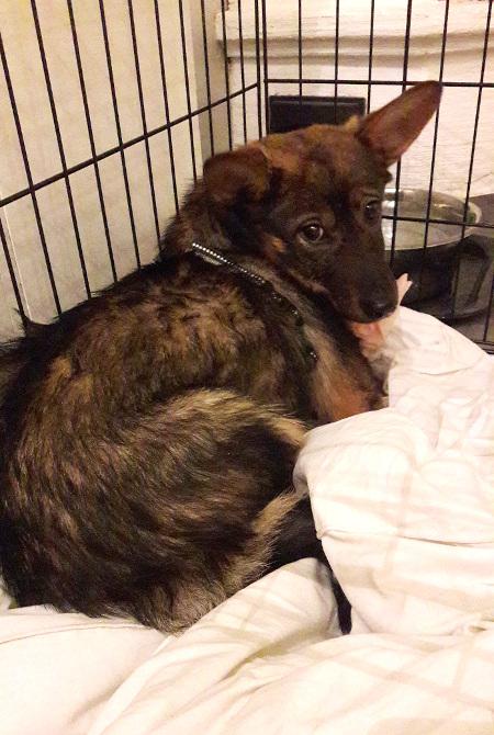 Lindy ensimmäisenä iltana hoitopaikassa.