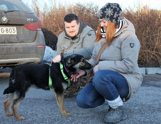 Torstai-illoissa alkaa olla jo kevään tuntua ja Viipurista saapuvat koirat saavat ihmetellä uutta kotimaataan auringon viime säteiden valossa. Maaliskuun 23. päivän kuljetuksessa Suomeen saapui neljä ihanaa koiraa: Sienna, Ljusja ja Leonid muuttivat omaan kotiin, Nino hoitopaikkaan.
