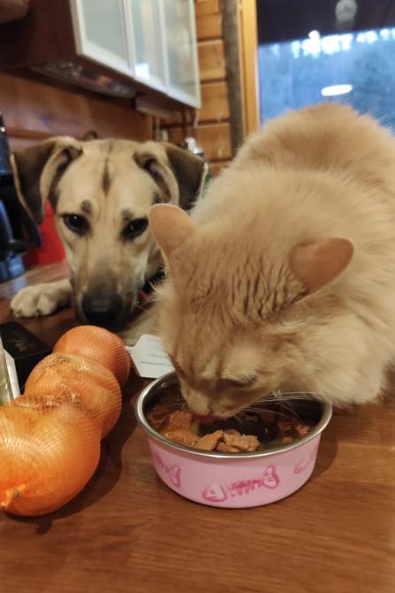 Tarina kotihoitopaikassaan tutustumassa lähietäisyydellä mm. kissojen ruokinta-aikoihin.