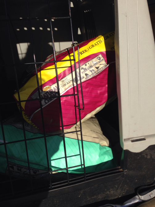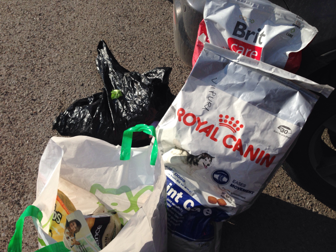 Paluukuormaan lastattiin tuttuun tapaan koiranruokaa vielä tarhalla asuville koirille.
