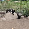 Tähän sisarussarjaan kuuluu yhteensä kuusi pentua. Harmaat ovat reippaampia, laikukkaisiin on lorahtanut joukkoon melkoinen määrä ujopiimää. Olga kertoo, ettei musta-valkoinen Taiga tule vapaaehtoisesti siliteltäväksi, eikä viihdy sylissä. Kun menemme aitaukseen Taiga vetäytyy turvalliseen koloon ja tarkkailee meitä piilostaan. Saamme sen napattua syliin valokuvia varten.