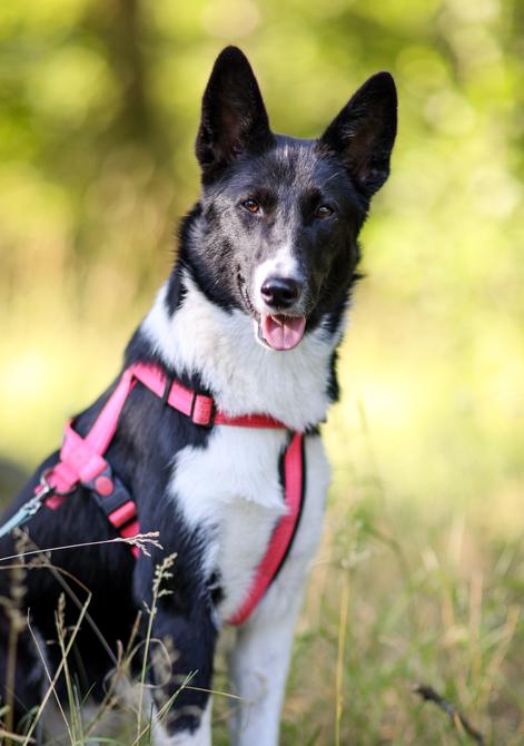Taigan kanssa on edistytty hoitopaikassa kivasti. Tämä liikunnallinen tyttö etsii koirakaverillista kotia rauhalliselta alueelta.