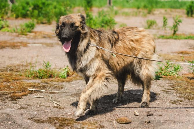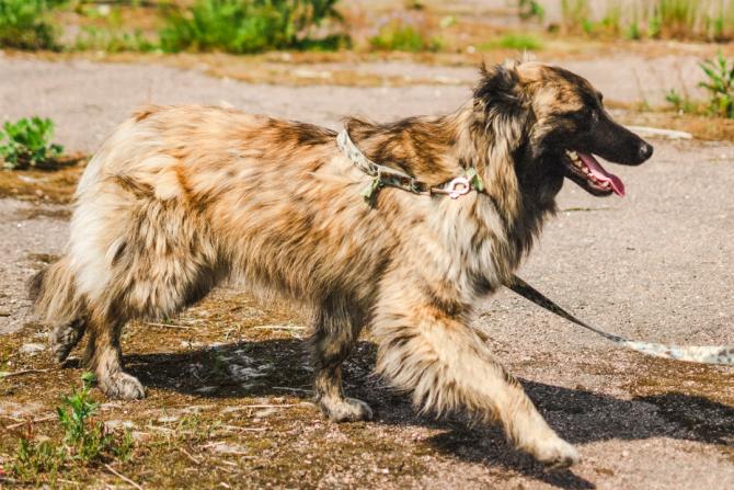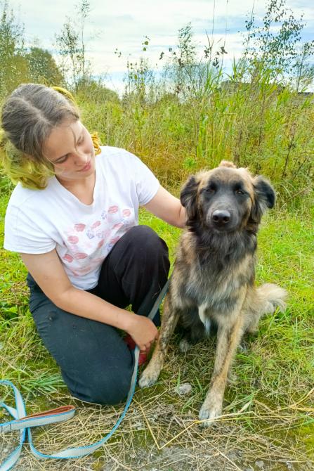 Taya-parka. Tarhaoloissa, monen sadan koiran keskellä eläminen on sille stressaavaa. Taya on hiljalleen vapaaehtoisten avustuksella totutellut varusteisiin ja niissä kulkemiseen, mutta kaikki jännittää sitä kovasti. Snezhannan mukaan Taya on varovaisuudestaan huolimatta kuitenkin hyvin ystävällinen tyttö, joka ilahtuu tuttujen ihmisten näkemisestä.