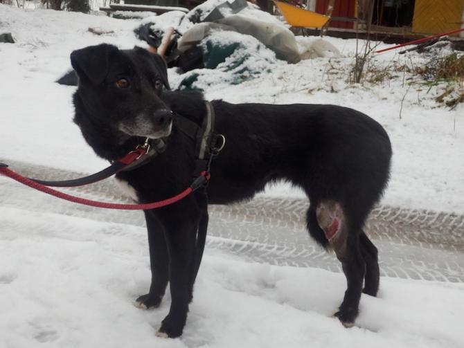 Syksyn tullen nälkäinen Tiitu oli erityisen kiinnostunut ystävällisten hirvimiesten saaliista ja saikin siitä säännöllisesti osansa. Olimme toiveikkaita, koska Tiitusta oli usein näköhavaintoja ja riistakamerassa tuttua liikettä. Loukkuun tyttö ei vain silti mennyt. Joulukuun alussa saimme järkyttävän uutisen, että Tiitu oli jäänyt auton alle Mäntässä, mutta jatkanut matkaansa ontuen entistäkin enemmän. Olimme surun murtamia. Suurin pelkomme oli, että Tiitu piiloutuisi jonnekin kuolemaan yksin ja kovissa kivuissa. Etsintöjä tehostettiin, mutta loukkaantuneesta koiraparasta ei näkynyt jälkeäkään useisiin päiviin.