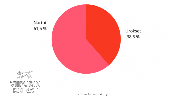 Suomeen tulleista koirista oli narttuja selvästi yli puolet.