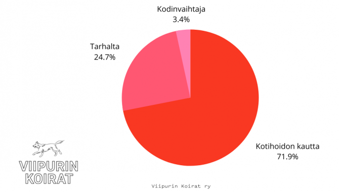 15 % koirista oli tuotu suoraan tarhalle menetettyään kotinsa esimerkiksi muuton tai muun elämänmuutoksen, kyllästymisen tai omistajansa kuoleman vuoksi.