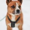 Tapaamme Totoshan joulukuun alussa tarhalla. Ohutkarvainen poika tärisee mutta tulee ystävällisesti tekemään tuttavuutta. Osa tärinästä johtuu varmasti jännityksestä, mutta talven hyytävyys tuntuu varmasti näin ohutkarvaisen koiran luissa ja ytimissä. Totosha katselee jännittyneenä ympärilleen mutta suhtautuu ystävällisesti muihin koiriin. Poika hakee turvaa tutun ihmisen luota ja nojaa tämän jalkoihin.