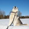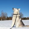 Uhku vaikuttaa hyvin sosiaaliselta, reippaalta ja kivalta koiralta. Vieraat ihmiset se ottaa ilolla vastaan ja vieläkin suuremmalla ilolla poika lähtee hihnalenkille. Mikään ihme se ei ole, että jaloittelu tuntuu mieluisalta, sillä Uhkulla on tarhalla asuinpaikkana hyvin pieni oma yksiö. Muutama viikko sellaisessa ilman minkäänlaista liikuntaa on nuorelle ja energiselle Uhkulle turhauttavaa ja raskasta. Ulkona poika painaakin menemään hihna tiukkana ja nuuskuttaa lumihankea suurella nautinnolla. Lumisella pellolla Uhku aloittaa kaverinsa kanssa iloisen paini- ja juoksuleikin, joka voisi kestää vaikka kuinka pitkään. Aikaa ei kuitenkaan ole rajattomasti, mutta pahimmat energiat poika saa onneksi purkaa edes väliaikaisesti.