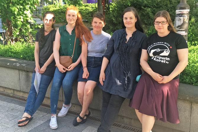 Kuvassa vasemmalta oikealle: Ira Müller, Sini Räisänen, Susanna Kankaanpää, Aino Arjas ja Tanja Liukkonen.