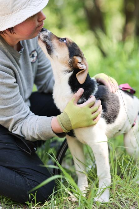 Huhtikuun alussa Elena kuuli entiselle armeija-alueelle majoittuneesta koirasta, joka oli saanut pennut. Hän lähti ystävänsä kanssa etsimään emoa ja pentuja, ja ne löytyivätkin hylätystä rakennuksesta. Emo oli selvästi entinen kotikoira, sillä se antoi helposti kiinni. Pennut oli vielä pieniä kääryleitä, joten oli melkoinen onni, että ne löydettiin ja saatiin turvaan tässä vaiheessa. Vain muutama viikko myöhemmin sosiaalistaminen ihmisiin olisi ollut jo vaikeampaa.