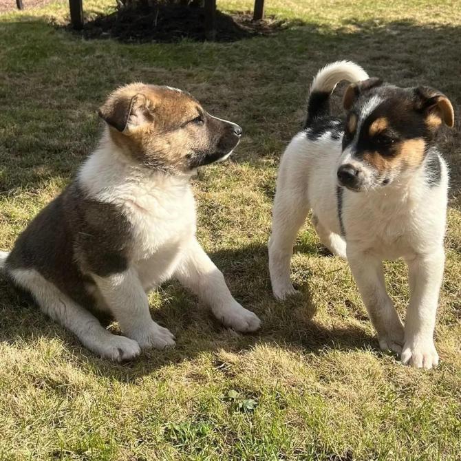 Näistä pennuista näkeekin, että ne ovat saaneet runsaasti ihmisten huomiota juuri siihen tärkeimpään sosiaalistamisaikaan. Ne ovat hyvin iloisia, reippaita ja haluavat tehdä tuttavuutta heti aivan vieraidenkin ihmisten kanssa. Mikä onni, että niiden ei tarvinnut kasvaa tarhalla, saati ilman ihmiskontakteja entisellä armeija-alueella! Silloin niiden kohtalo olisi ollut karu - kylmää, nälkää ja taistelua elämässä selviämisestä. Nyt nämä riiviöt ovat saaneet sen sijaan ihan hyvät eväät uuteen elämään Suomessa.